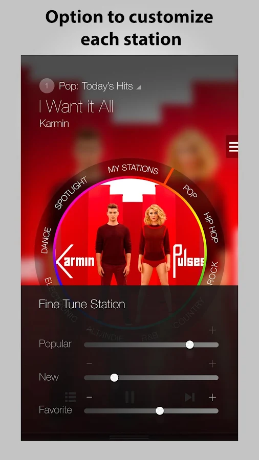 • Fine-tune stations based on popularity, novelty and song favorites.
